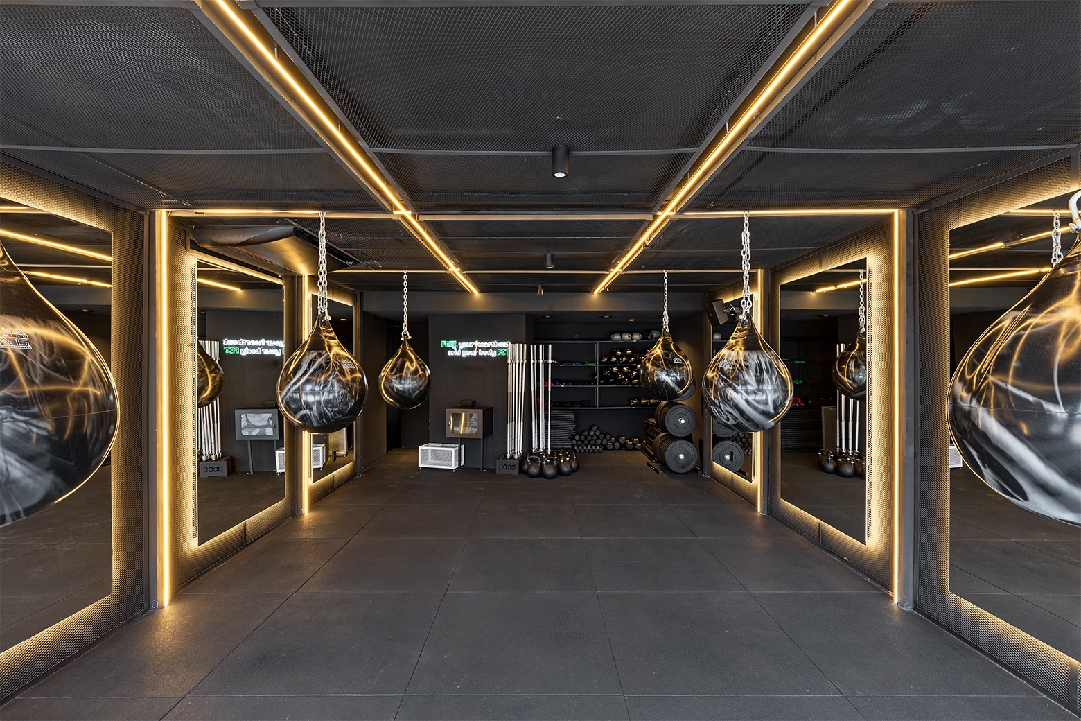 Ao longo do projeto, nossa equipe atuou para traduzir visualmente a essência futurista da marca em cada ambiente: do salão de spinning com clima de club, ao estúdio de boxing com iluminação tática, passando por escadas monocromáticas, áreas de transição imersivas, recepção minimalista e vestiários com estética de backstage.